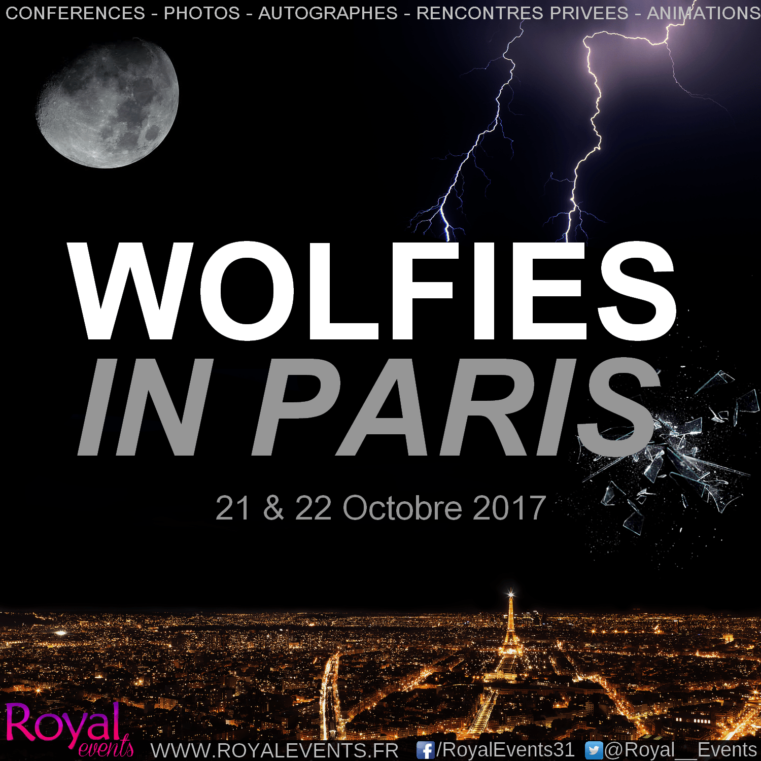 L’événement suivant sera lui aussi dédié à la série Teen Wolf, mais se déroulera dans la capitale française les 21 et 22 octobre 2017, et s’intitule Wolfies in Paris. Seuls deux acteurs ont pour le moment été annoncés : Tyler Posey (Scott McCall) et Melissa Ponzio (Melissa McCall). Si la seconde est une habituée, le premier participera à sa première convention française et est donc très attendu. Il est de ce fait bien sûr extra-guest.